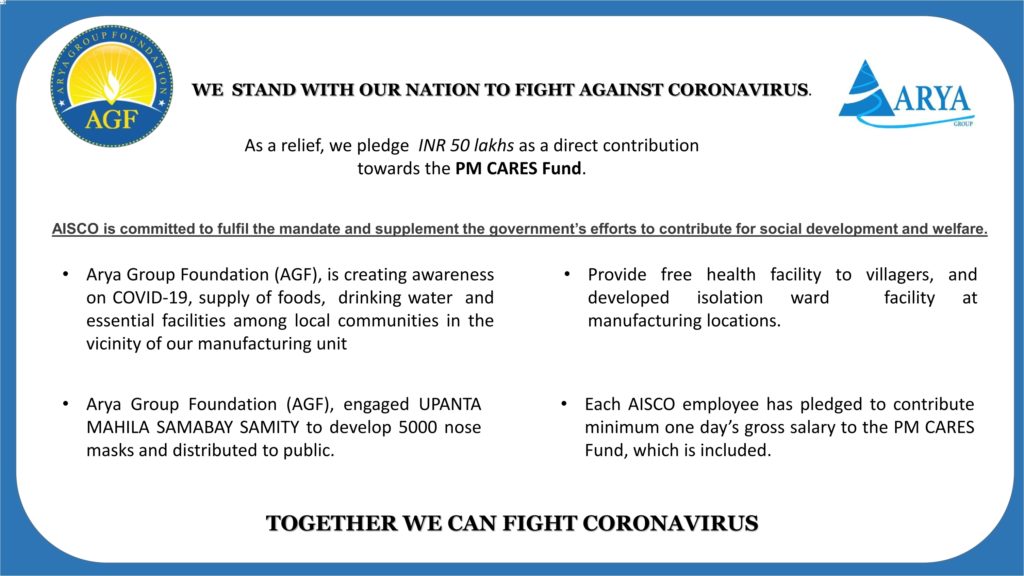 AISCO has been recognised for its Business & Social Cause efforts within the region & have been awarded a Corporate Excellence Award for “Best CSR & Emerging Steel Industry 2017” by Odisha Cultural Foundation.
